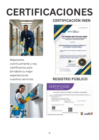 CERTIFICACIONES CERTIFICACIÓN INEN Mejoramos contínuamente y nos certificamos para birndarle la mejor experiencia en nuestros servicios. REGISTRO PÚBLICO 12