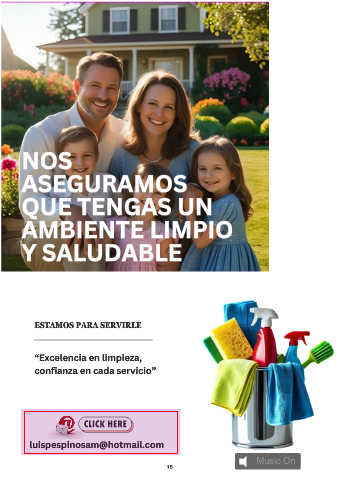 NOS ASEGURAMOS QUE TENGAS UN AMBIENTE LIMPIO Y SALUDABLE ESTAMOS PARA SERVIRLE “Excelencia en limpieza, confianza en cada servicio” luispespinosam@hotmail.com 15
