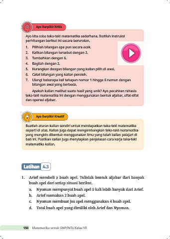 teka-teki matematika ini dengan menggunakan bentuk aljabar, sifat-sifat