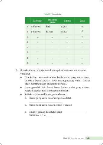 ■ Jika kalian menemukan dua buah sudut yang sama besar,