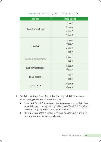 Tabel 5.2 Istilah dalam Hubungan Antar Sudut untuk Gambar 5.7