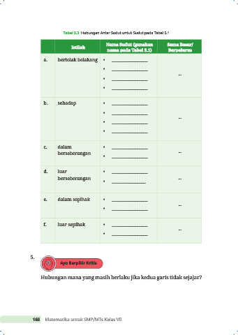 Tabel 5.3 Hubungan Antar Sudut untuk Sudut pada Tabel 5.1