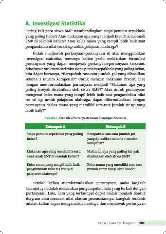 Tabel 6.1 Formulasi Pertanyaan dalam Investigasi Statistika