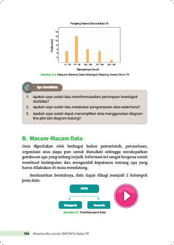 Gambar 6.6 Diagram Batang Data Kelompok Panjang Nama Siswa 7A