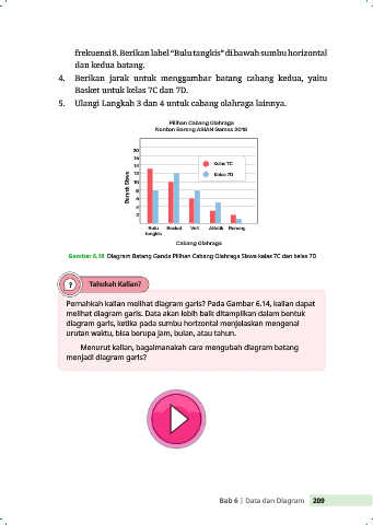 Gambar 6.18 Diagram Batang Ganda Pilihan Cabang Olahraga Siswa kelas 7C dan kelas 7D