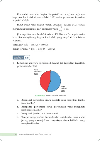 kapasitas hard disk di atas adalah 216 , maka persentase kapasitas
