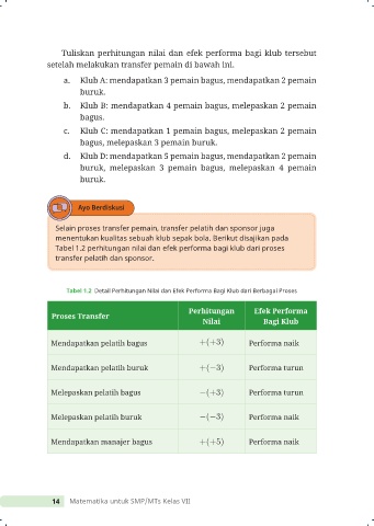 Tabel 1.2 Detail Perhitungan Nilai dan Efek Performa Bagi Klub dari Berbagai Proses