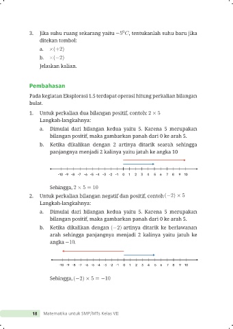 2. Untuk perkalian bilangan negatif dan positif, contoh