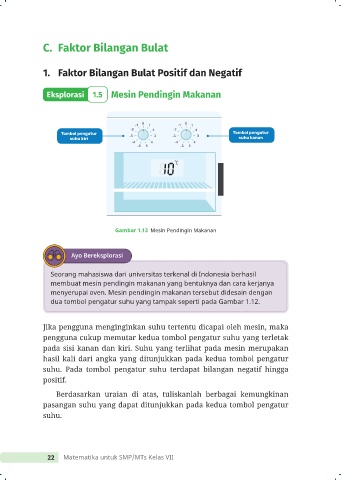 suhu. Pada tombol pengatur suhu terdapat bilangan negatif hingga