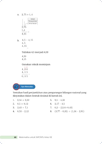 1. 0,54 + 0,32 5. 9,5 – 4,33