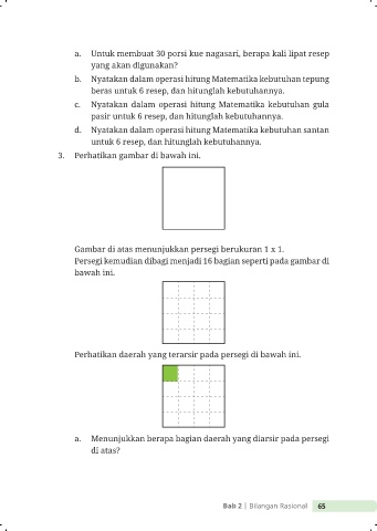 a. Menunjukkan berapa bagian daerah yang diarsir pada persegi