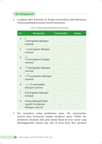 Tabel 2.9 Menentukan Nilai Kebenaran Pernyataan