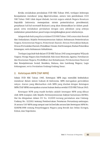 Selain UUD NRI Tahun 1945, Ketetapan MPR juga memiliki kedudukan