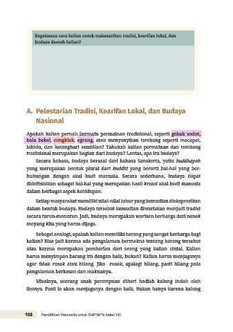 A. Pelestarian Tradisi, Kearifan Lokal, dan Budaya