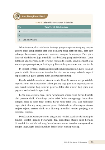Tabel 3.2 Identiikasi Peraturan di Sekolah