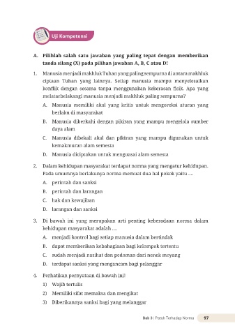 3. Di bawah ini yang merupakan arti penting keberadaan norma dalam