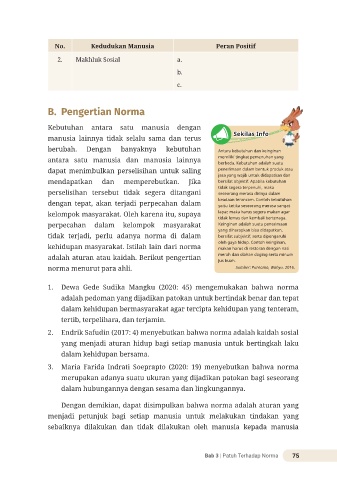 1. Dewa Gede Sudika Mangku (2020: 45) mengemukakan bahwa norma