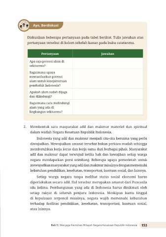 Diskusikan beberapa pertanyaan pada tabel berikut. Tulis jawaban atas