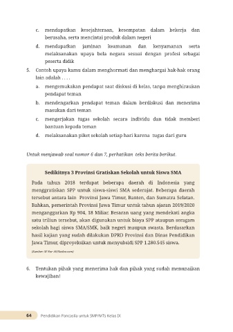 64 Pendidikan Pancasila untuk SMP/MTs Kelas IX