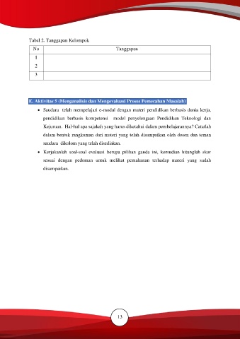 E. Aktivitas 5 (Menganalisis dan Mengevaluasi Proses Pemecahan Masalah)