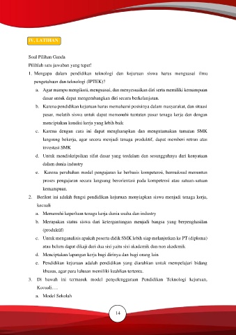 e. Pendidikan kejuruan adalah pendidikan yang diarahkan untuk mempelajari bidang