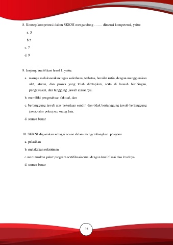 8. Konsep kompetensi dalam SKKNI mengandung ……. dimensi kompetensi, yaitu: