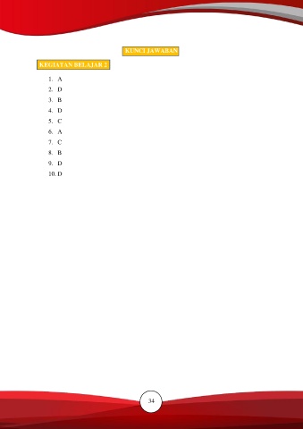 KUNCI JAWABAN KEGIATAN BELAJAR 2 1. A 2. D 3. B 4. D 5. C 6. A 7. C 8. B 9. D 10. D 34
