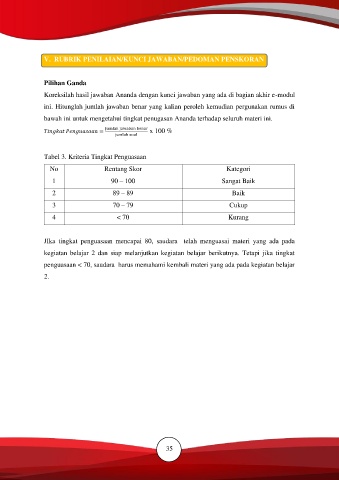 V.  RUBRIK PENILAIAN/KUNCI JAWABAN/PEDOMAN PENSKORAN
