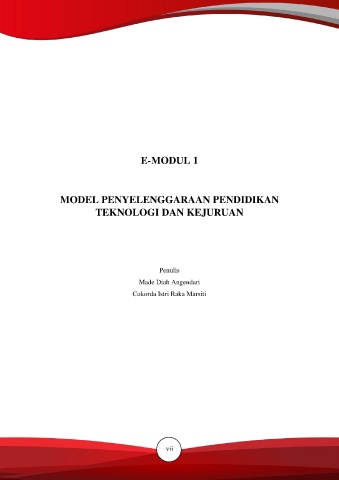 E-MODUL 1 MODEL PENYELENGGARAAN PENDIDIKAN TEKNOLOGI DAN KEJURUAN Penulis Made Diah Angendari Cokorda Istri Raka Marsiti vii