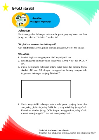 4. Untuk menyelediki hubungan antara sudut pusat, panjang busur, dan