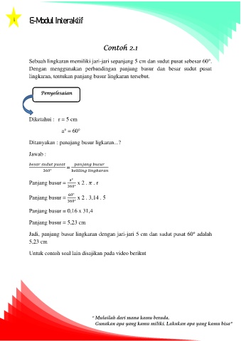 Jadi, panjang busur lingkaran dengan jari-jari 5 cm dan sudut pusat 60° adalah