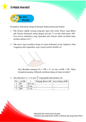 2. Pak anwar ingin membuat talang air hujan berbentuk juring lingkaran. Pada