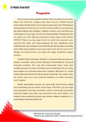 E-Modul berbasis Matematika Realistik ini merupakan bahan ajar pada mata