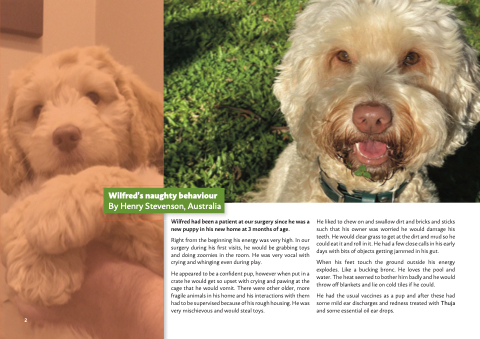 He had the usual vaccines as a pup and after these had some mild ear discharges and redness treated with Thuja and some essential oil ear drops.