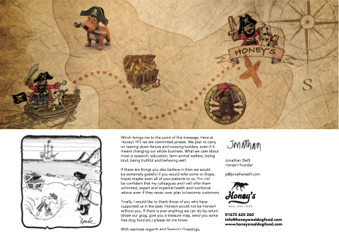 Finally, I would like to thank those of you who have supported us in the past. Honey’s would not be Honey’s without you. If there is ever anything we can do by return (share our grog, give you a treasure map, send you some free dog food etc.) please let me know.