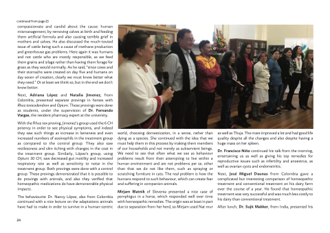 Next, Adriana López and Natalia Jimenez, from Colombia, presented separate provings in horses with Rhus toxicodendron and Opium. These provings were done as students, under the supervision of Dr. Fernando Vargas, the resident pharmacy expert at the university.