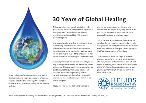 When Helios was founded in 1986 it was with a simple mission; to create a new source of potent, accurate and effective homoeopathic remedies that bring about profound healing and the relief of suffering.
