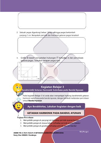 2. Menyelidiki pengaruh massa beban terhadap periode ayunan bandul