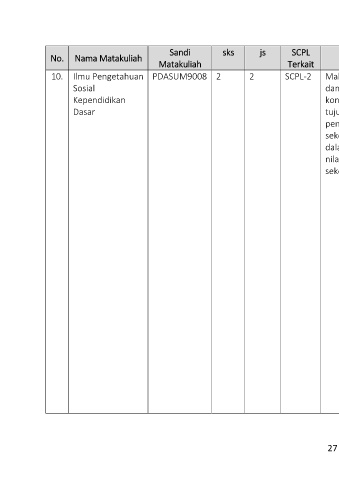 10. Ilmu Pengetahuan PDASUM9008 2 2 SCPL-2 Mahasiswa memahami konsep Matakuliah ini mengkaji tentang