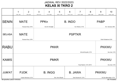 Menghasilkan jadwal:13/09/2022 aSc Timetables