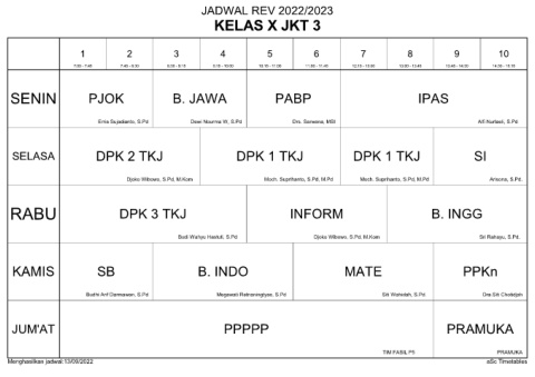 Menghasilkan jadwal:13/09/2022 aSc Timetables