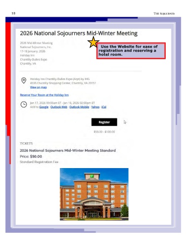18 THE SOJOURNER Use the Website for ease of registration and reserving a hotel room.
