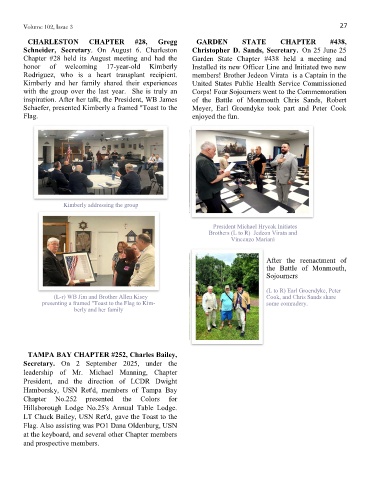 inspiration. After her talk, the President, WB James    of  the  Battle  of  Monmouth  Chris  Sands,  Robert