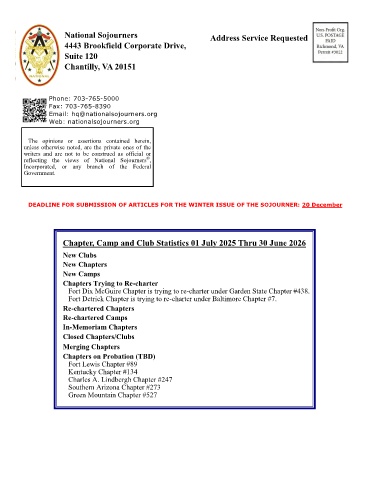 Chapter, Camp and Club Statistics 01 July 2025 Thru 30 June 2026