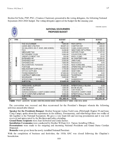 Brother Ed Nolte, PNP, PNC, (Trustees Chairman), presented to the voting delegates, the following National