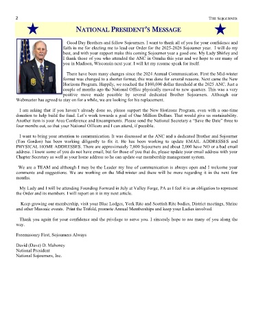 faith in me for electing me to lead our Order for the 2025-2026 Sojourner year. I will do my