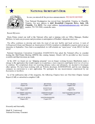 Your National Headquarters has moved from Springfield, Virginia, to Chantilly,
