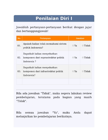 Bila ada jawaban "Tidak", maka segera lakukan review