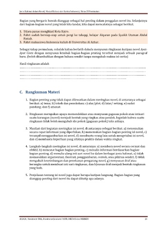 bagian penting, d) menulis ulang inti sari novel ke dalam berbagai jenis kalimat, e) tidak