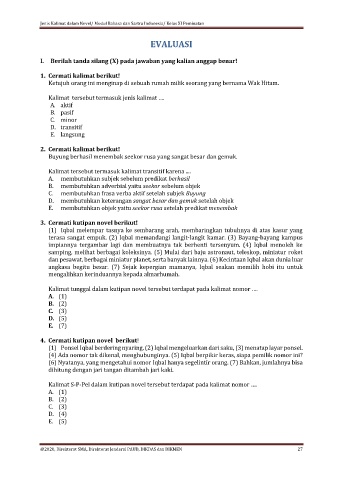 Jenis Kalimat dalam Novel/ Modul Bahasa dan Sastra Indonesia/ Kelas XI Peminatan